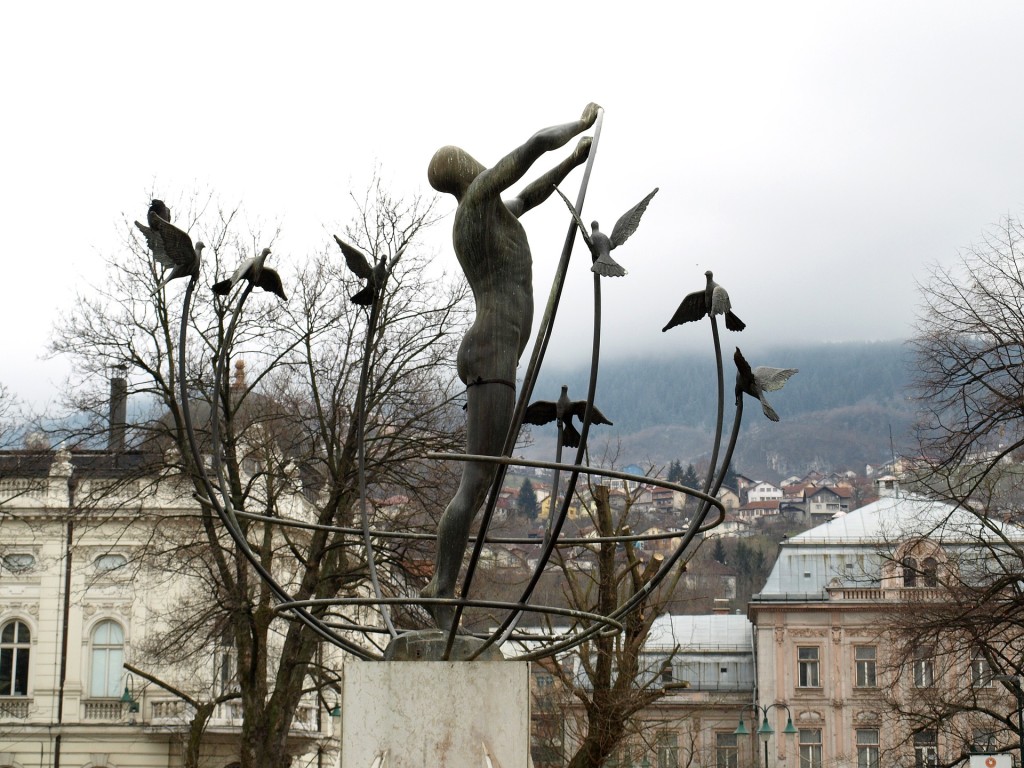 Im Bosnien-Krieg spielte die Stadt eine Schlüsselrolle. Vor dem Krieg bezeichneten sich 50 Prozent der Einwohner als „Muslime“, 25 Prozent als Serben, 13 Prozent als „Jugoslawen“ und knapp 7 Prozent als Kroaten. Im April 1992 wurde Sarajevo von serbischen Soldaten eingekesselt und blieb 1.425 Tage lang eingeschlossen. Am 28. August 1995 explodierte auf dem Marktplatz der Stadt eine serbische Granate; 37 Menschen starben. Der Vorfall sorgte auf seiten der USA für den Entschluss, den Krieg durch die Verhandlungen von Dayton zu beenden.